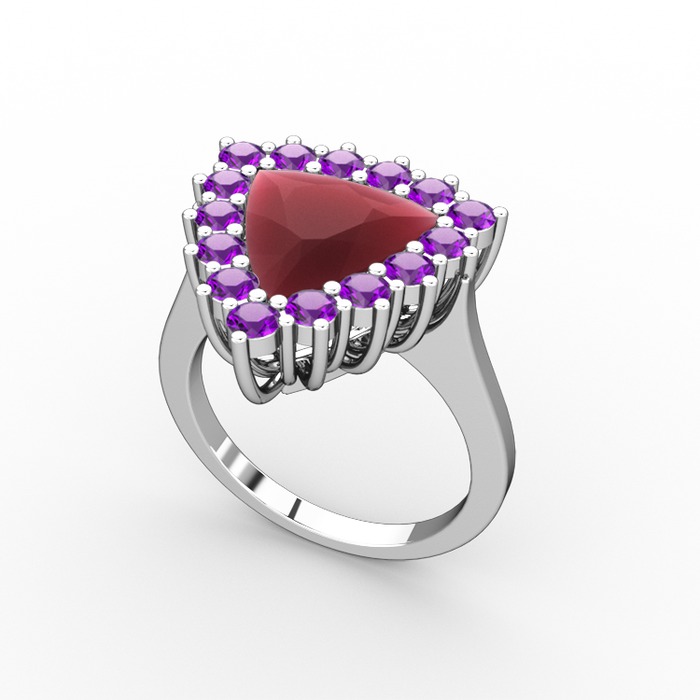 Kök yakut ve ametist 8 ayar beyaz altın yüzük