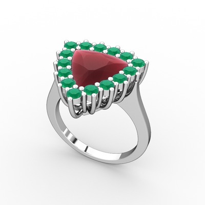 Kök yakut ve kök zümrüt 18 ayar beyaz altın yüzük