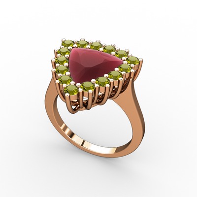 Kök yakut ve peridot 14 ayar rose altın yüzük