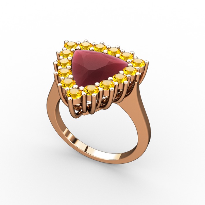 Kök yakut ve sitrin 14 ayar rose altın yüzük