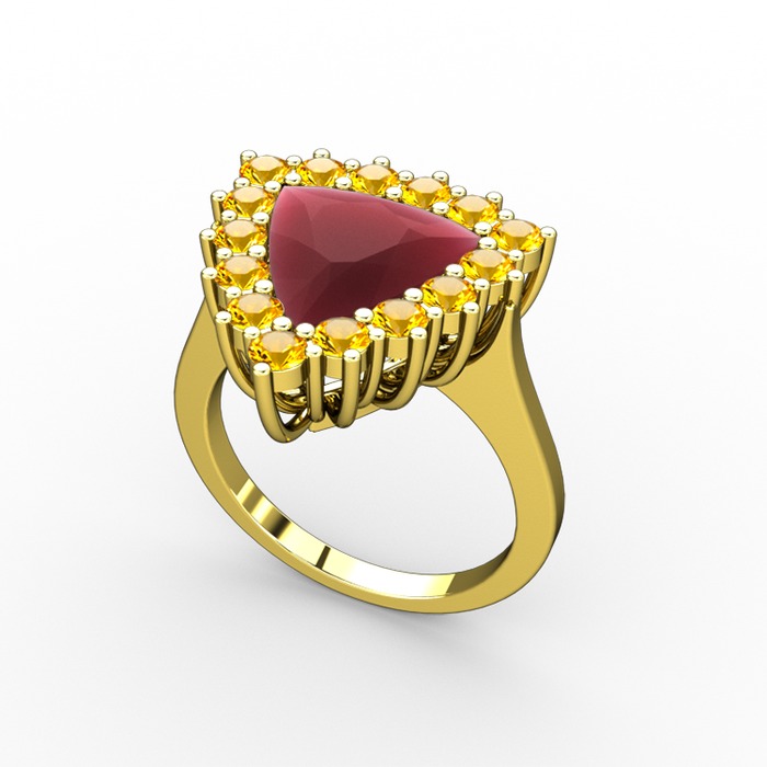 Kök yakut ve sitrin 18 ayar altın yüzük