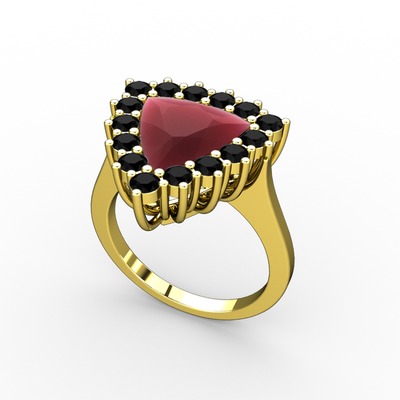 Kök yakut ve siyah zirkon 925 ayar altın kaplama gümüş yüzük