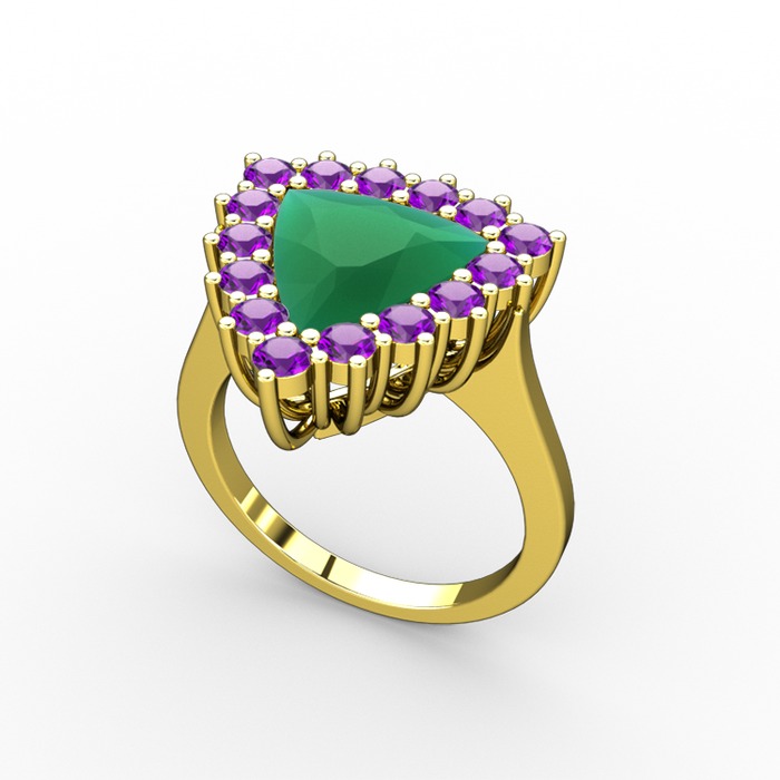 Kök zümrüt ve ametist 18 ayar altın yüzük