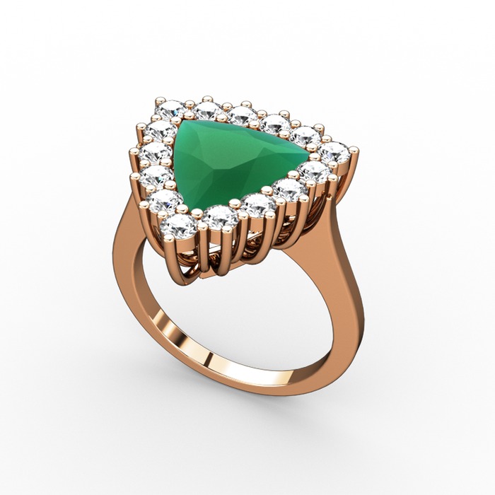 Kök zümrüt ve beyaz zirkon 14 ayar rose altın yüzük