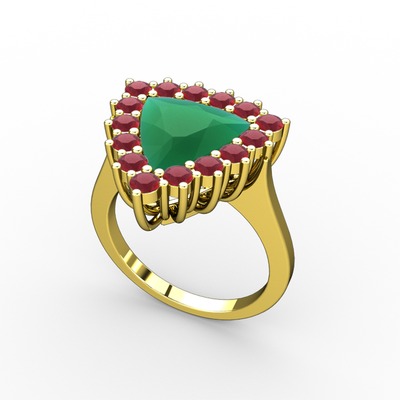 Kök zümrüt ve kök yakut 14 ayar altın yüzük