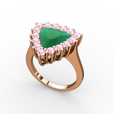 Kök zümrüt ve pembe kuvars 14 ayar rose altın yüzük