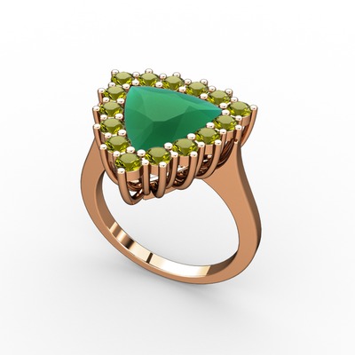 Kök zümrüt ve peridot 8 ayar rose altın yüzük