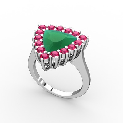 Kök zümrüt ve rodolit garnet 8 ayar beyaz altın yüzük