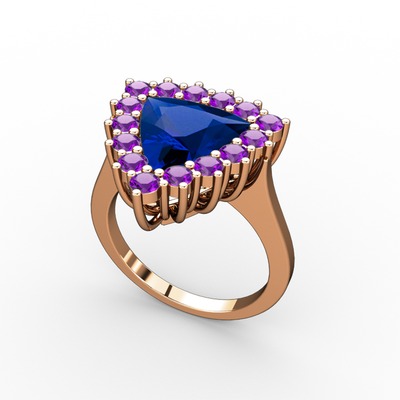 Lab safir ve ametist 18 ayar rose altın yüzük