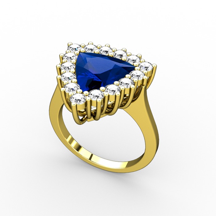 Lab safir ve beyaz zirkon 925 ayar altın kaplama gümüş yüzük