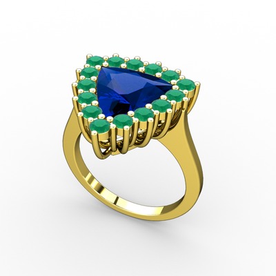 Lab safir ve kök zümrüt 14 ayar altın yüzük