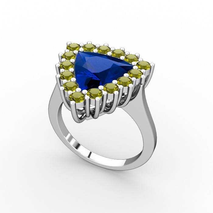 Lab safir ve peridot 8 ayar beyaz altın yüzük