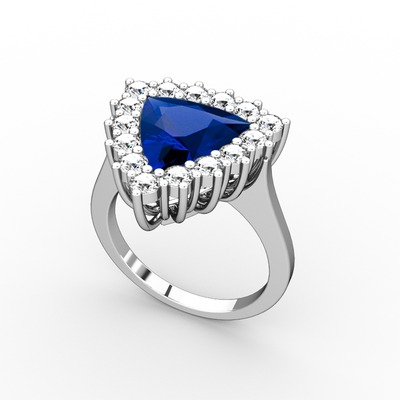 Lab safir ve pırlanta 14 ayar beyaz altın yüzük (0.9 karat)