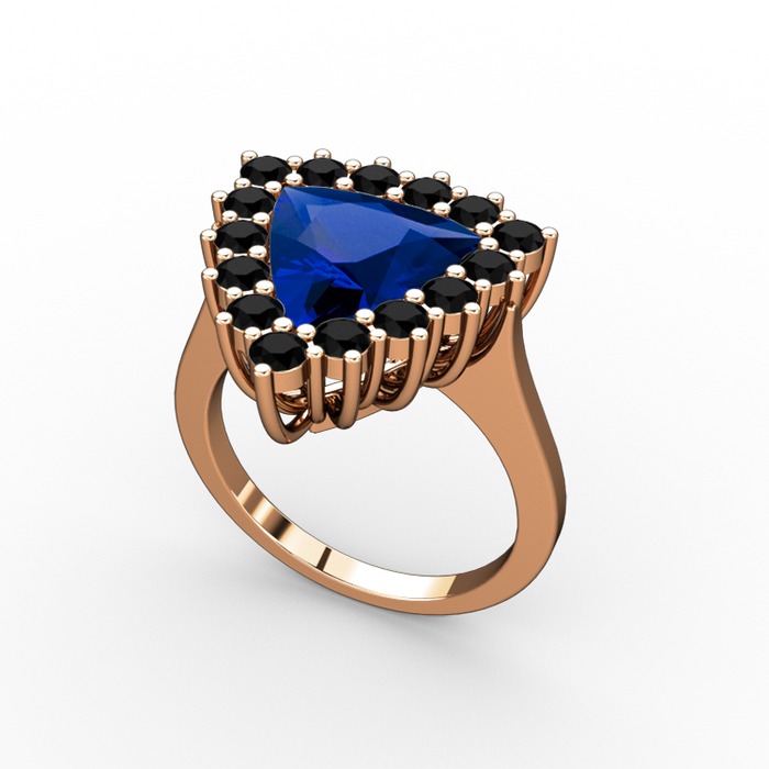 Lab safir ve siyah zirkon 925 ayar rose altın kaplama gümüş yüzük