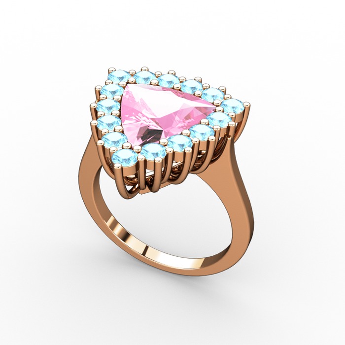 Pembe kuvars ve akuamarin 8 ayar rose altın yüzük
