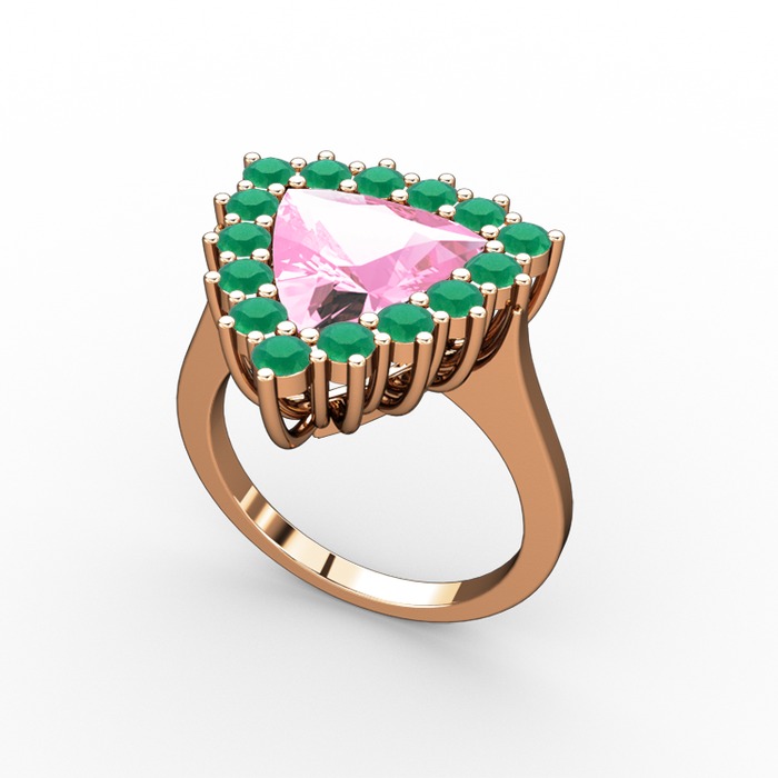 Pembe kuvars ve kök zümrüt 8 ayar rose altın yüzük