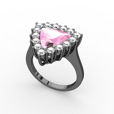Pembe kuvars ve pırlanta 925 ayar siyah rodyum kaplama gümüş yüzük (0.9 karat)