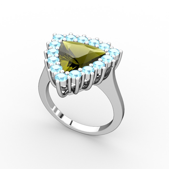 Peridot ve akuamarin 925 ayar gümüş yüzük
