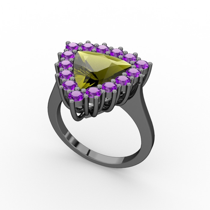 Peridot ve ametist 925 ayar siyah rodyum kaplama gümüş yüzük