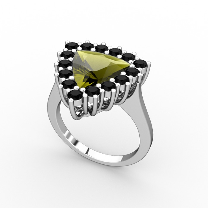 Peridot ve siyah zirkon 18 ayar beyaz altın yüzük