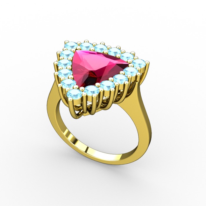Rodolit garnet ve akuamarin 925 ayar altın kaplama gümüş yüzük