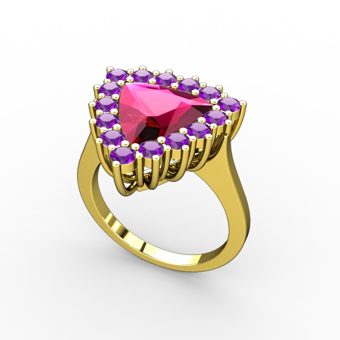 Rodolit garnet ve ametist 14 ayar altın yüzük