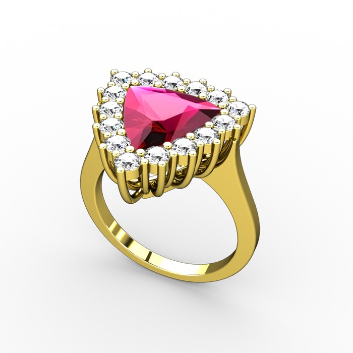 Rodolit garnet ve beyaz zirkon 8 ayar altın yüzük