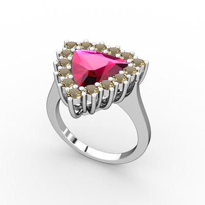 Rodolit garnet ve dumanlı kuvars 8 ayar beyaz altın yüzük