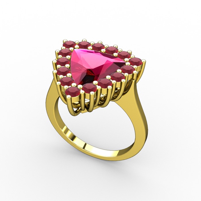 Rodolit garnet ve kök yakut 925 ayar altın kaplama gümüş yüzük