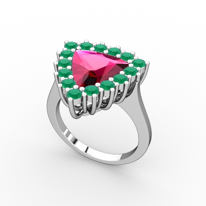 Rodolit garnet ve kök zümrüt 8 ayar beyaz altın yüzük
