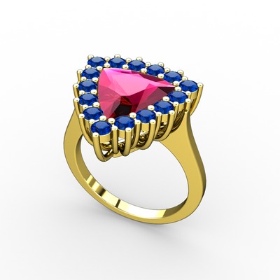 Rodolit garnet ve lab safir 18 ayar altın yüzük