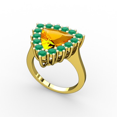 Sitrin ve kök zümrüt 14 ayar altın yüzük