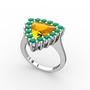 Sitrin ve kök zümrüt 14 ayar beyaz altın yüzük