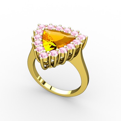 Sitrin ve pembe kuvars 18 ayar altın yüzük