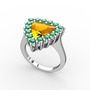 Sitrin ve yeşil kuvars 14 ayar beyaz altın yüzük