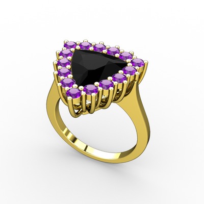 Siyah zirkon ve ametist 8 ayar altın yüzük
