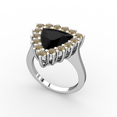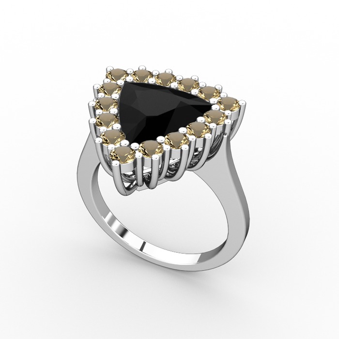 Siyah zirkon ve dumanlı kuvars 14 ayar beyaz altın yüzük