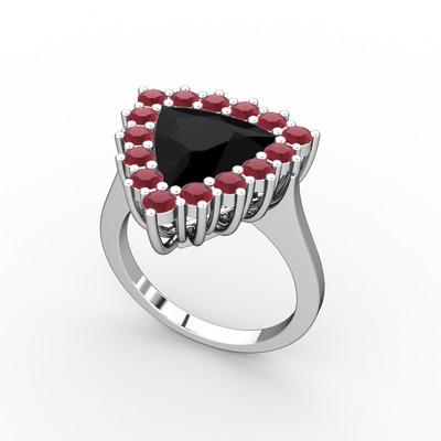 Siyah zirkon ve kök yakut 18 ayar beyaz altın yüzük