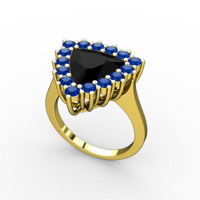 Siyah zirkon ve lab safir 925 ayar altın kaplama gümüş yüzük