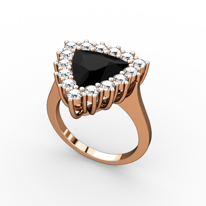 Siyah zirkon ve pırlanta 14 ayar rose altın yüzük (0.9 karat)