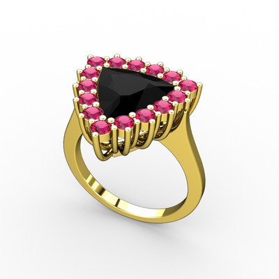 Siyah zirkon ve rodolit garnet 18 ayar altın yüzük