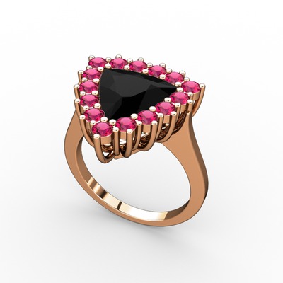 Siyah zirkon ve rodolit garnet 8 ayar rose altın yüzük