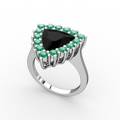 Siyah zirkon ve yeşil kuvars 18 ayar beyaz altın yüzük