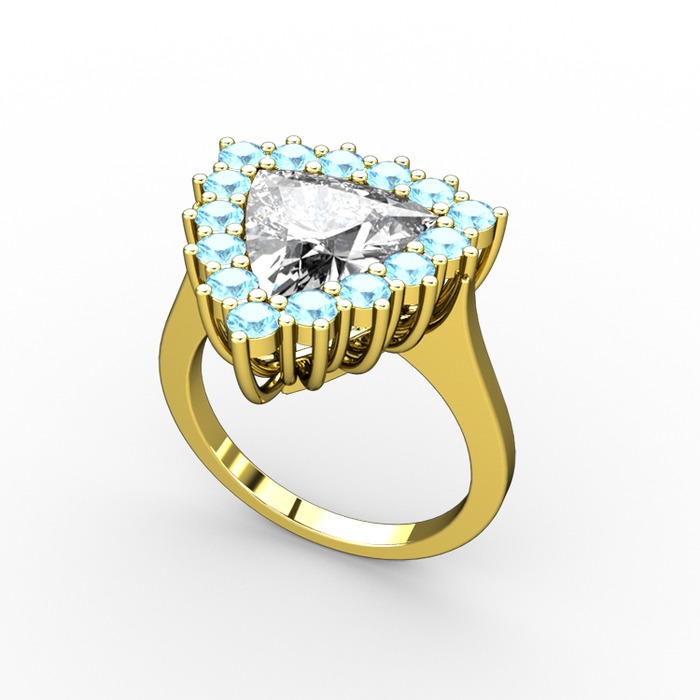 Swarovski ve akuamarin 925 ayar altın kaplama gümüş yüzük