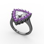Swarovski ve ametist 925 ayar siyah rodyum kaplama gümüş yüzük