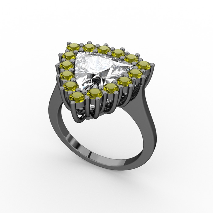 Swarovski ve peridot 925 ayar siyah rodyum kaplama gümüş yüzük