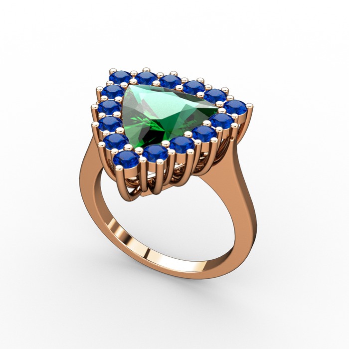 Yeşil kuvars ve lab safir 18 ayar rose altın yüzük