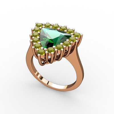 Yeşil kuvars ve peridot 18 ayar rose altın yüzük