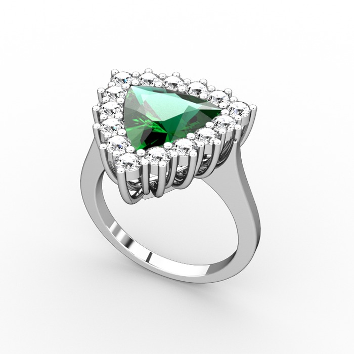 Yeşil kuvars ve pırlanta 18 ayar beyaz altın yüzük (0.9 karat)