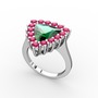 Yeşil kuvars ve rodolit garnet 18 ayar beyaz altın yüzük